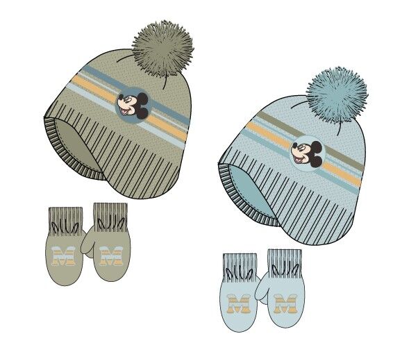 Gorro Y Manoplas Bebe Mickey Celeste Talla 48